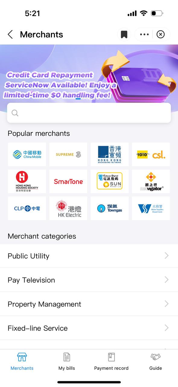 Covering a wide range of payment categories and users could enjoy hassle-free living by settling water, electricity, gas and government bills anytime and anywhere.